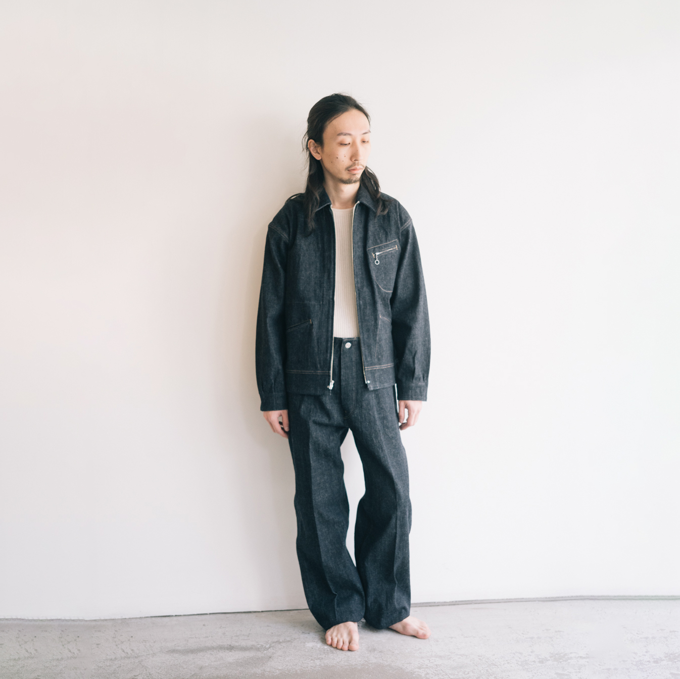 特殊な方法でサンフォライズ(防縮加工)のみをかけ、キバタデニムの柔らかさを活かした上品なデニム生地に仕立てました。