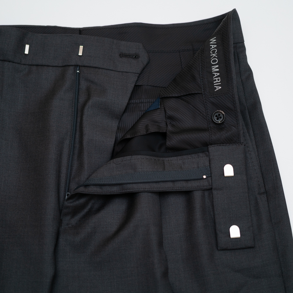 1910年に北イタリアで創業されたイタリア最高峰の服地メーカーエルメネジルド・ゼニアのスーパーウールで製作した、WACKO MARIA (ワコマリア)のワイドトラウザー。