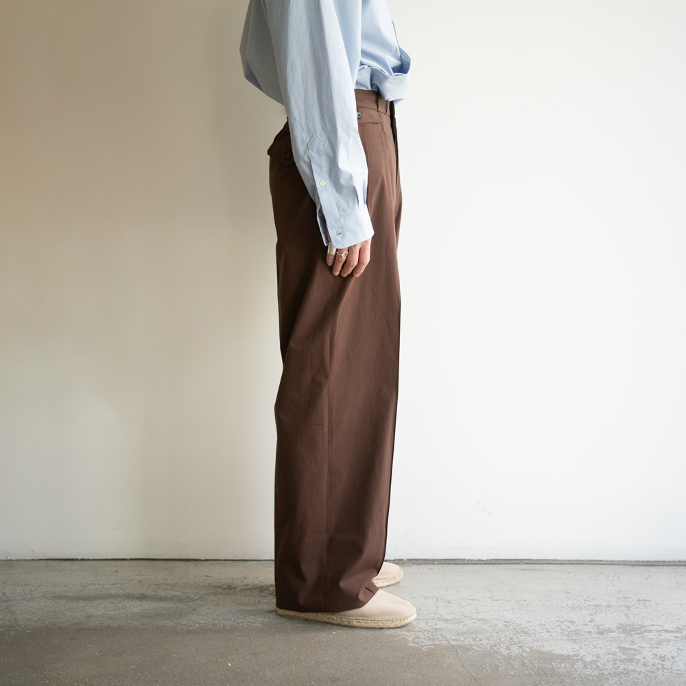 腿から裾までストレートに落ちる、OLD JOE (オールドジョー) の新型ワイドフィッティングトラウザー。