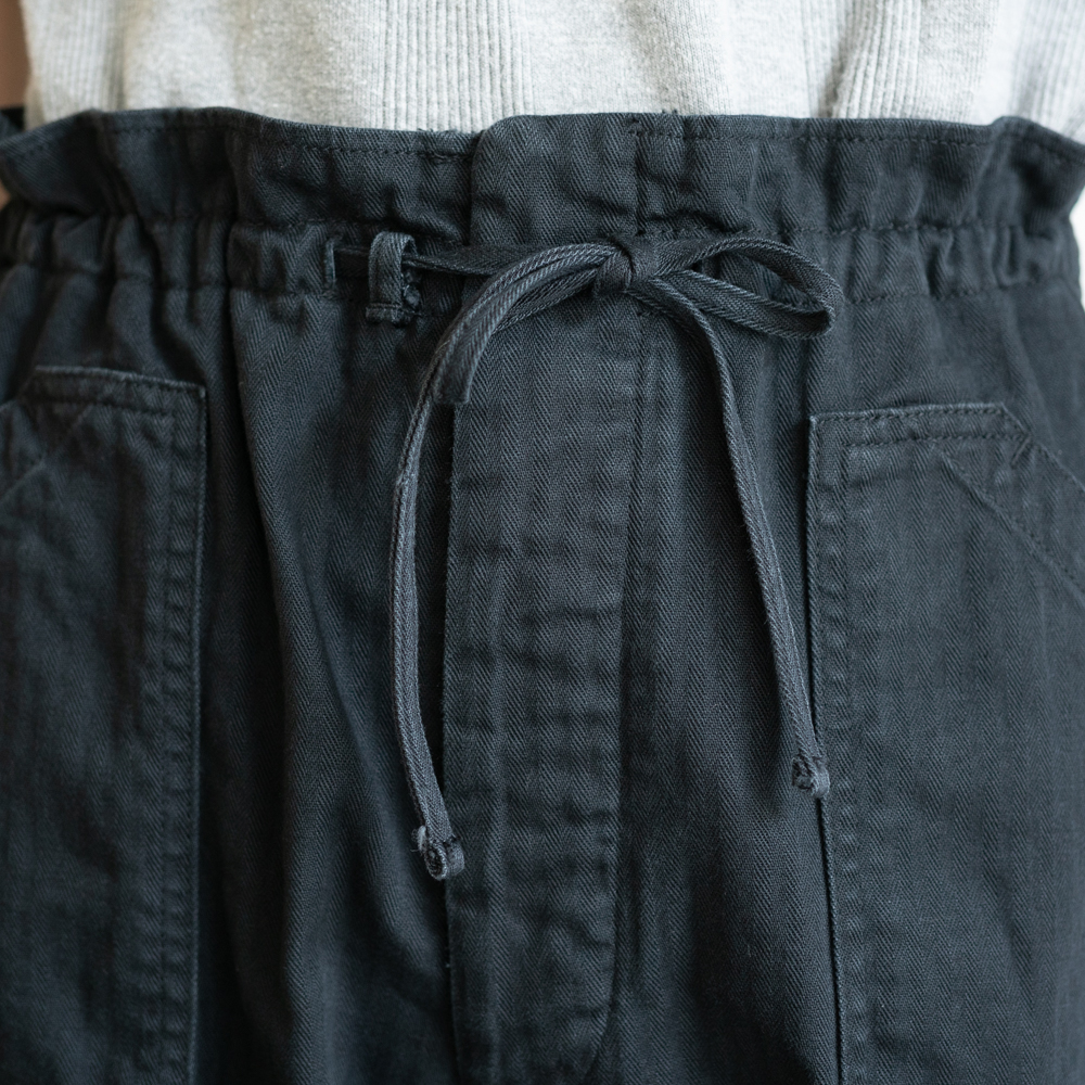 ミリタリーアーカイブピースのデザインをベースに、ウエストにドローコードを配しリラックスした表情に。