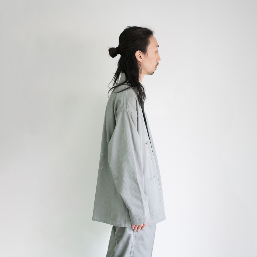 またオリジナルカラーで硫化染色し、経年変化の様を楽しめるコットンヘリンボーンの色合いも40年代のアーカイブピースで見かけるカラーとは違い上品な枯れ感を持っており、侘びと寂び、雅の二面性を感じ取れる事でしょう。