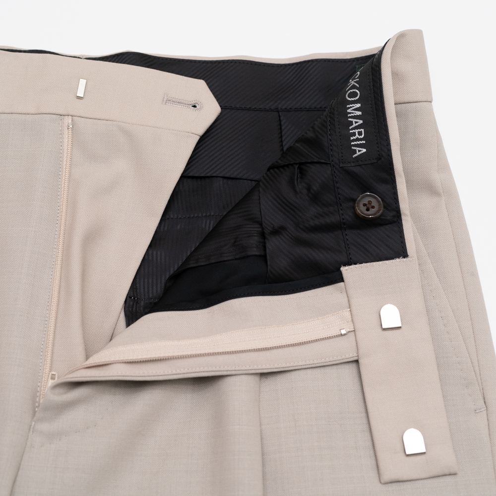 イタリアのテキスタイルメーカーDORMEUIL(ドーメル)社から厳選したスーパーウールで製作した、WACKO MARIA(ワコマリア)のワイドトラウザー。