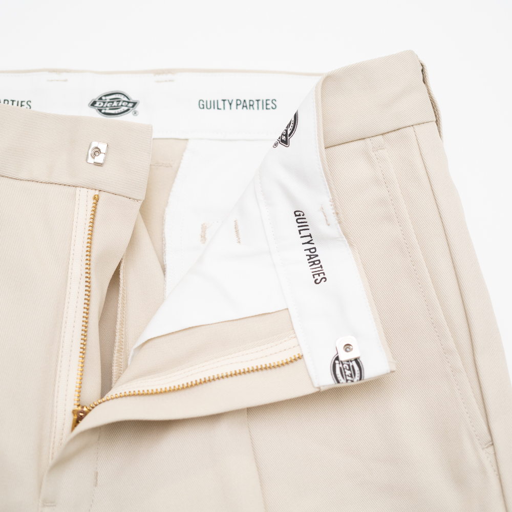 タフでハリのあるDICKIESのポリエステル/コットンを使用した、プリーツ入りのワイドなトラウザーです。