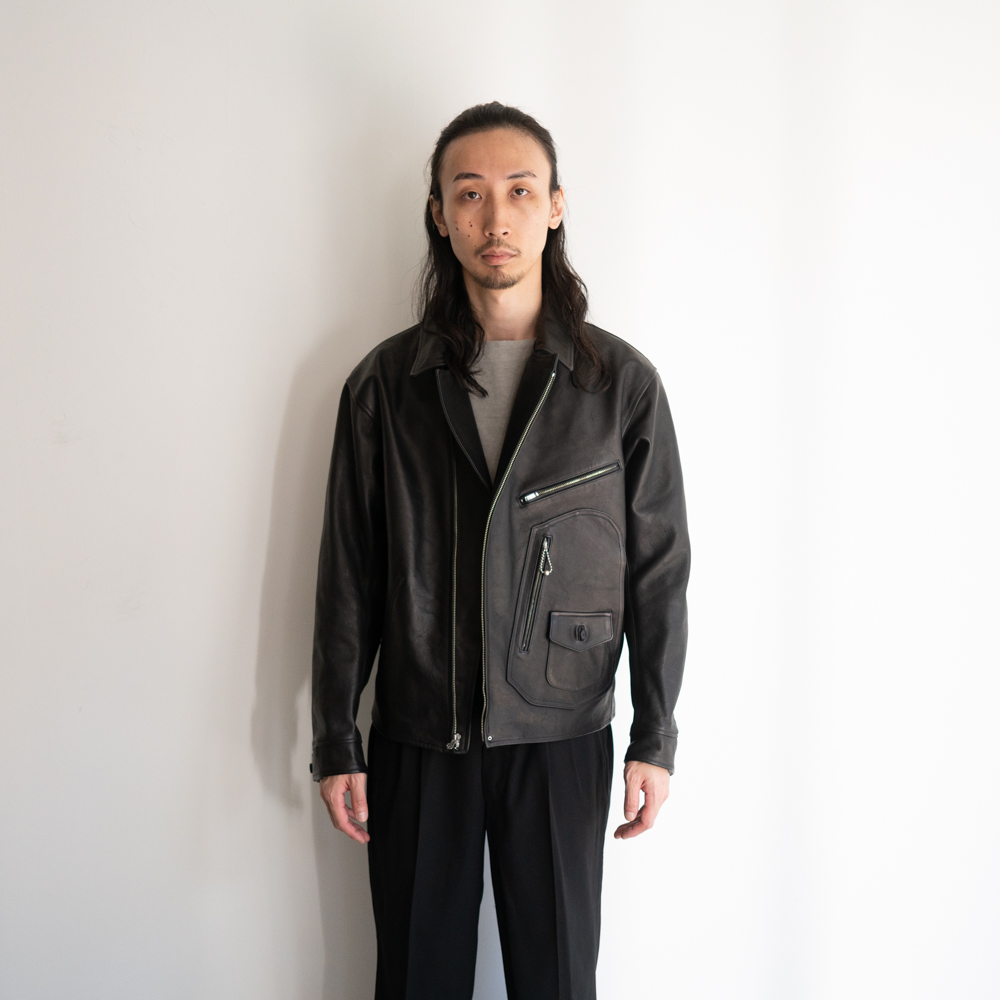 ざらつきのある手触りと色むらのある色調の、ラフでワイルドな仕上げが特徴のホースレザー。ソフトホース系よりも凹凸感をあえて残しており、色合いや質感が一着ずつ異なる一点物となります。