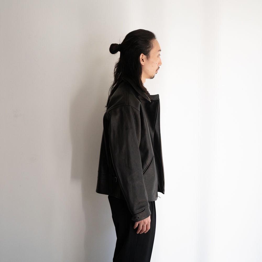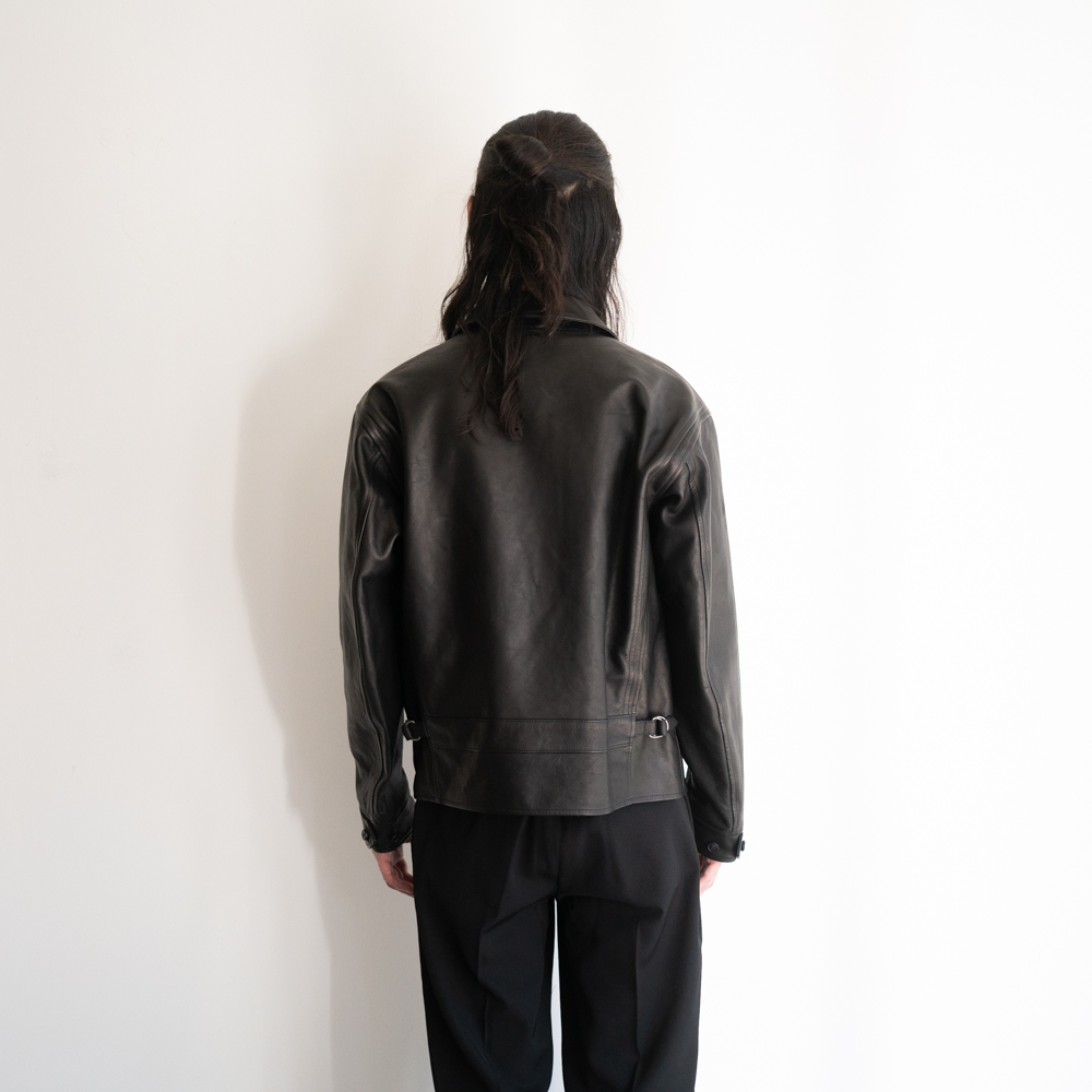 所謂ライダースジャケットとは違い、スポーツカフスにベルテッドバックスタイル、緩やかに湾曲したフロントラインなど