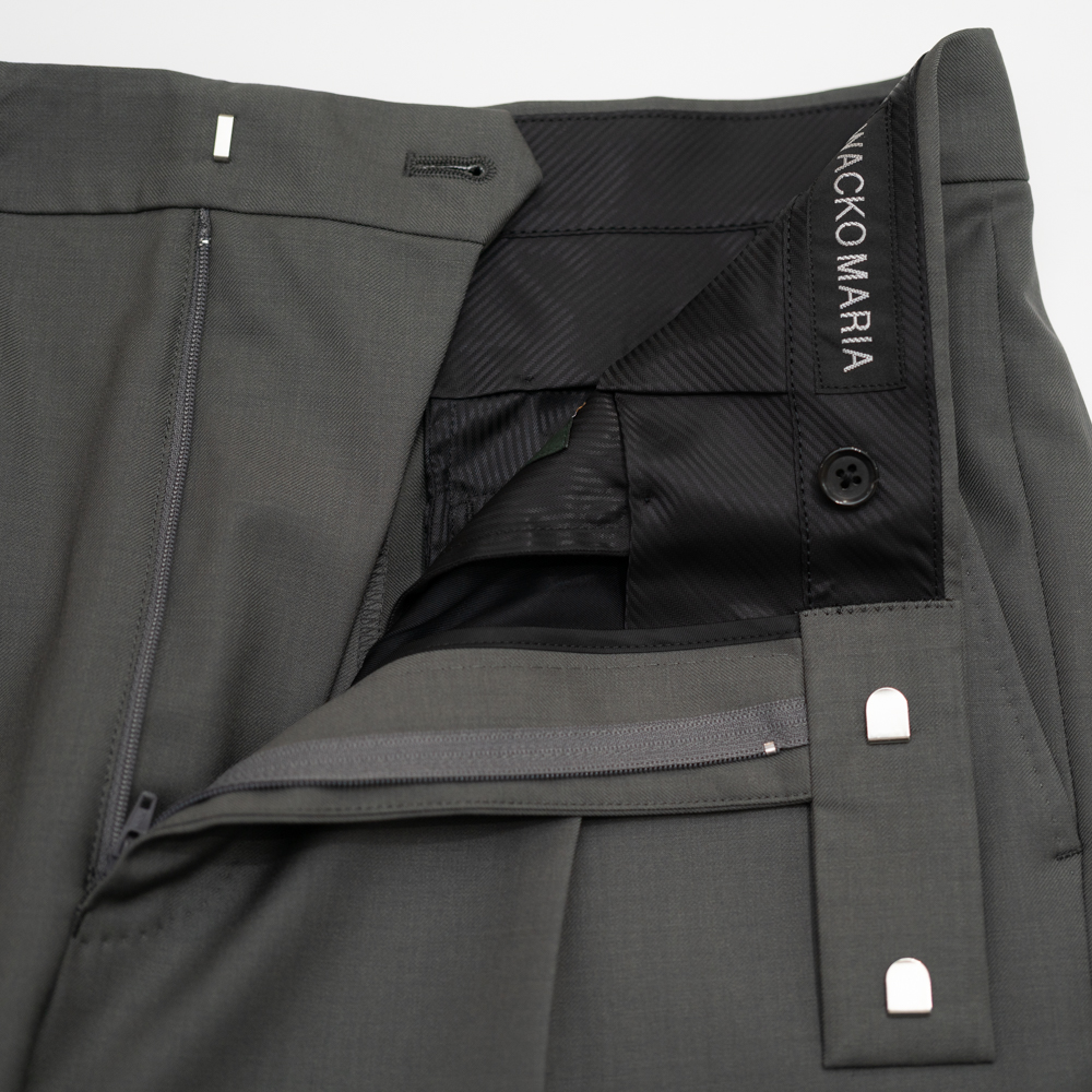 イタリアのテキスタイルメーカーDORMEUIL(ドーメル)社から厳選したスーパーウールで製作した、WACKO MARIA(ワコマリア)のワイドトラウザー。