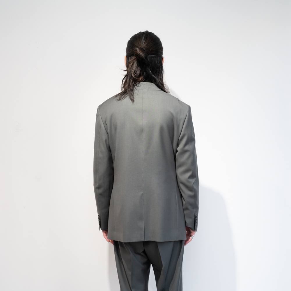 WACKO MARIAの立体的なパターンメイク、ゴージラインが低めのノッチドラペルと、随所に施したAMFステッチ、天然素材のものを使用した芯等、"仕立ての良いスーツ"のセオリーに則っていますが、ドレスからカジュアルまで対応できる1着です。