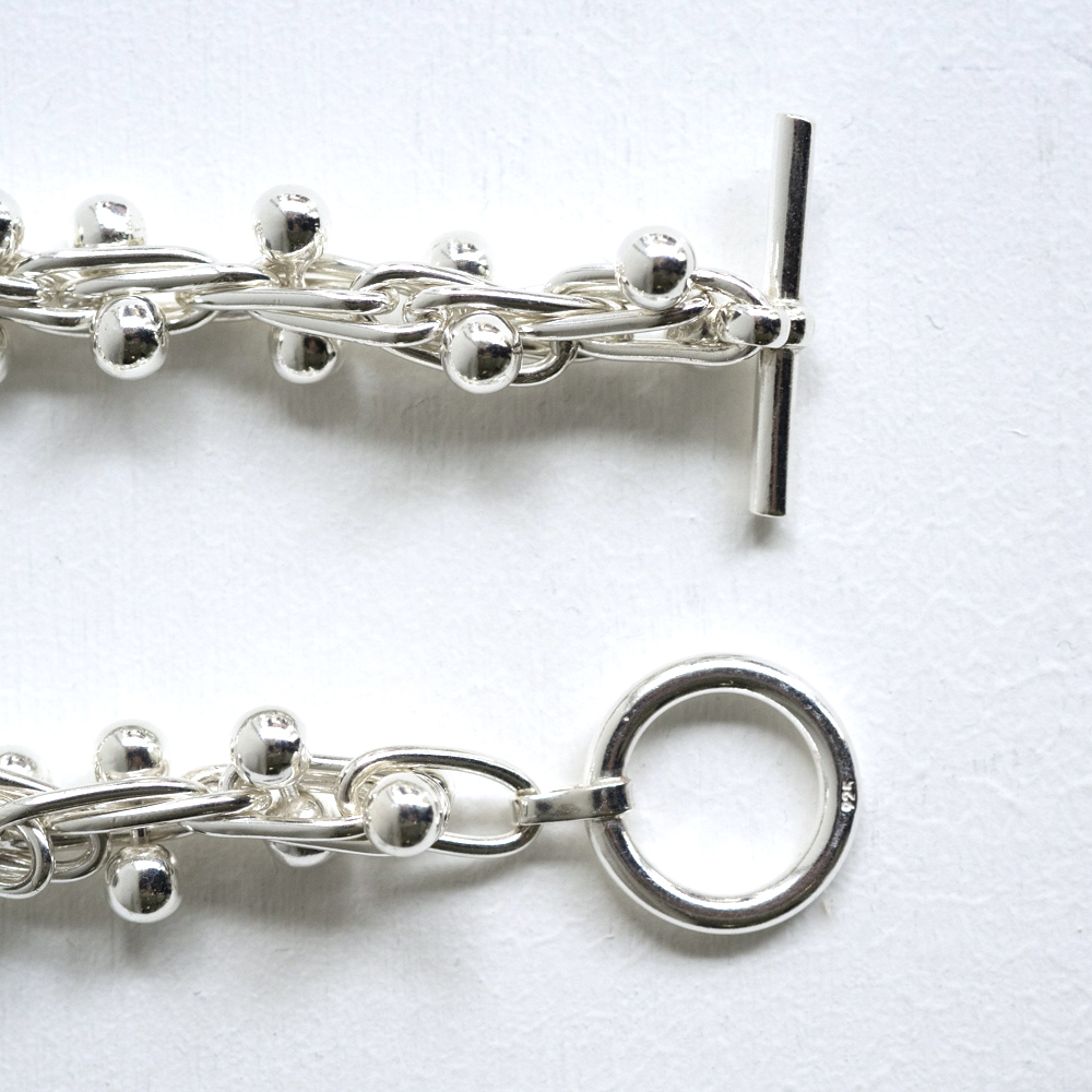 ヴィンテージらしく余計なノイズの無いデザインだから、重ね付けしても優美な佇まい。